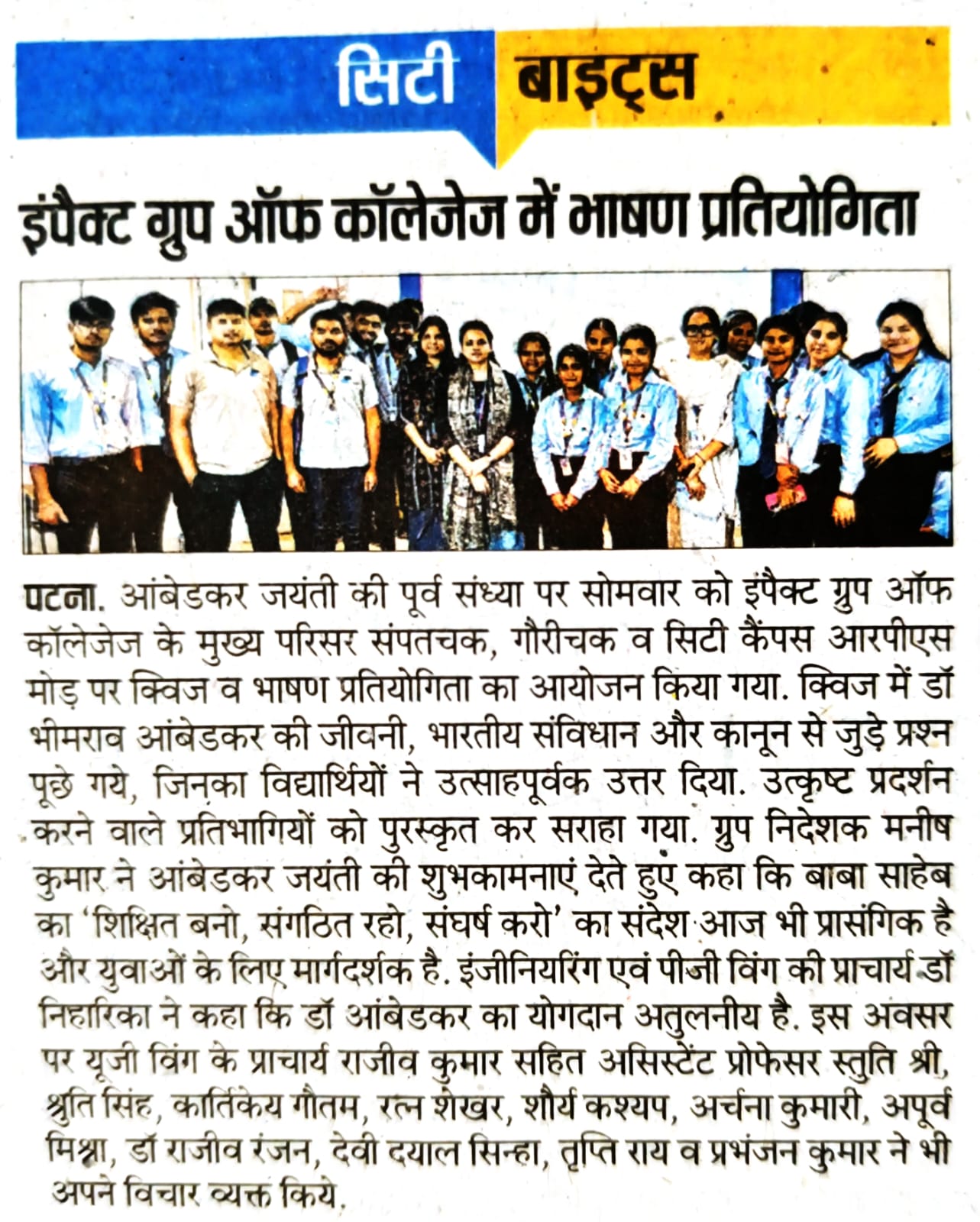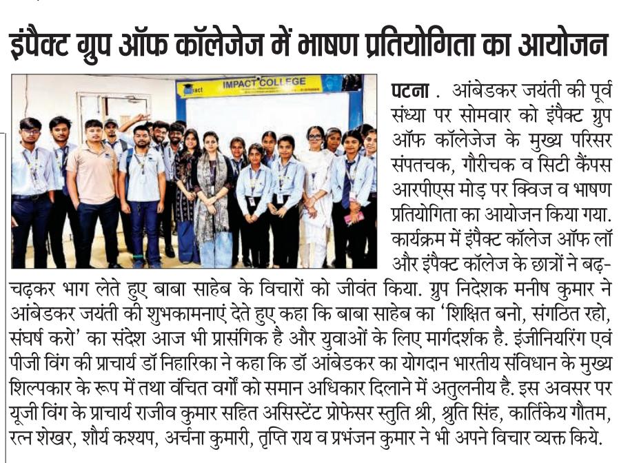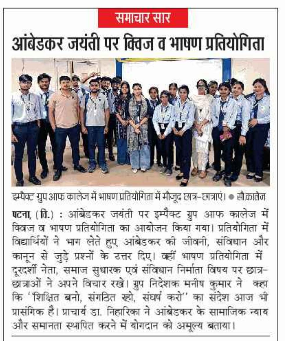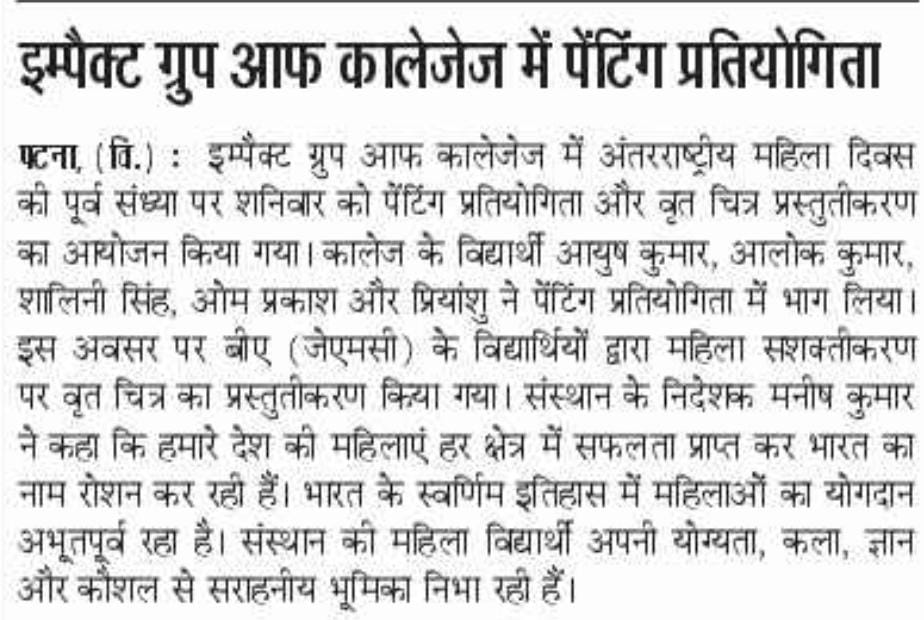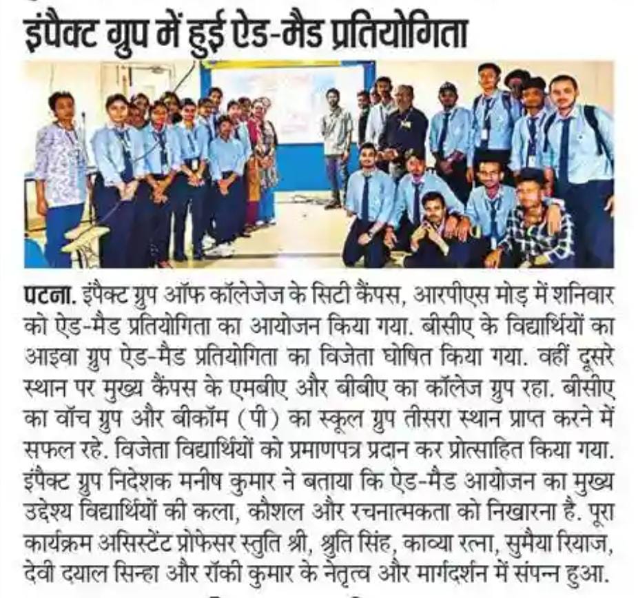 Without any exaggeration, I must say IMPACT, the leading College in Bihar provides us with highly experienced and well qualified teachers and extra-curricular activities in the bargain throughout our academic journey at College.